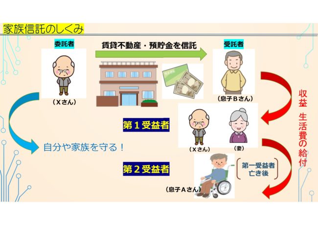 家族信託とは、「自分の財産を信頼できる家族に託し、あらかじめ定めた目的に沿って管理・運用してもらう制度」です。